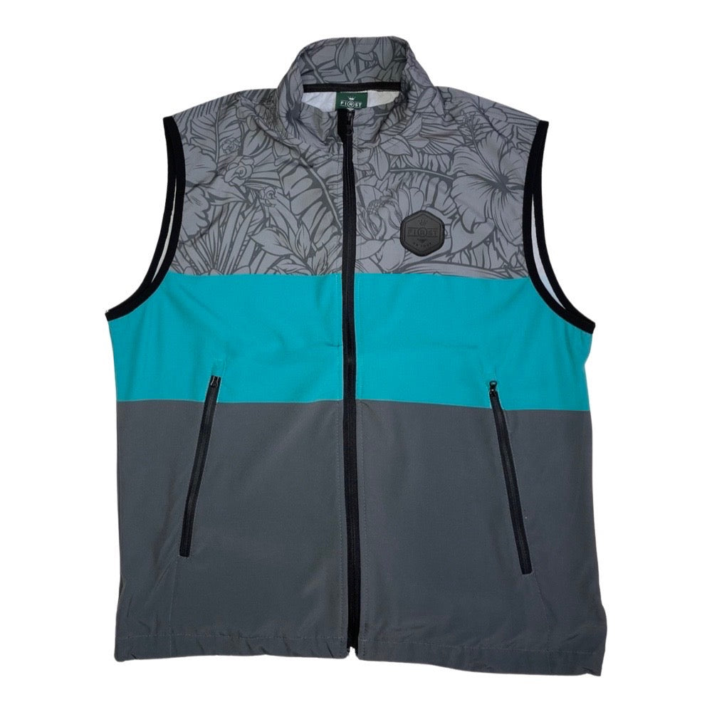 FLORAL COLOR BLOCK HYBRID VEST - TEAL/GREY